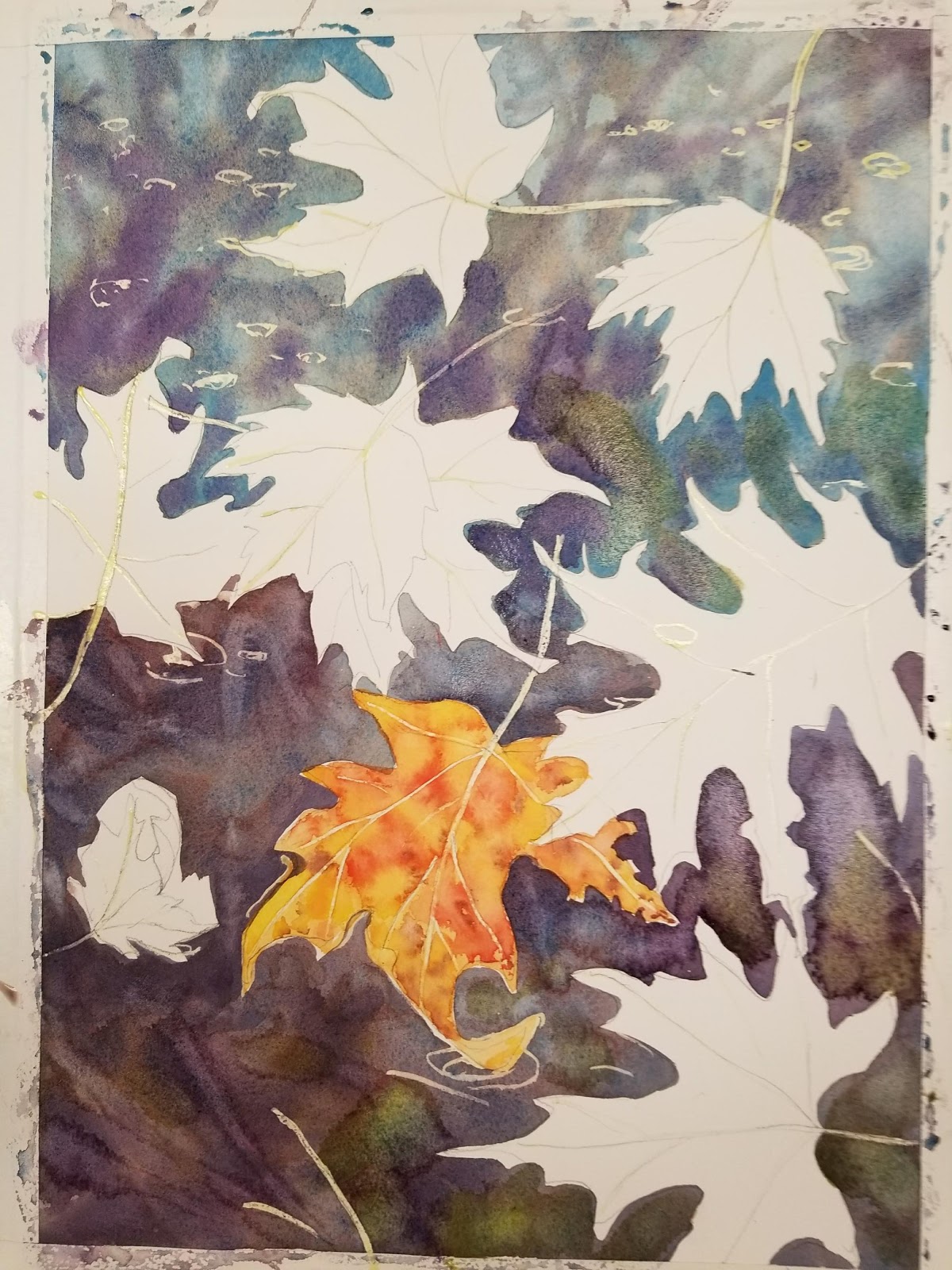 I'd like you try something different this time. Pick some of your own leaves and incorporate them into this composition. Painting each one as you look at the real leaf, study its detail and intricate coloration. You can also do whatever background you want, let this be your own but here's a skeleton as some ideas to begin!